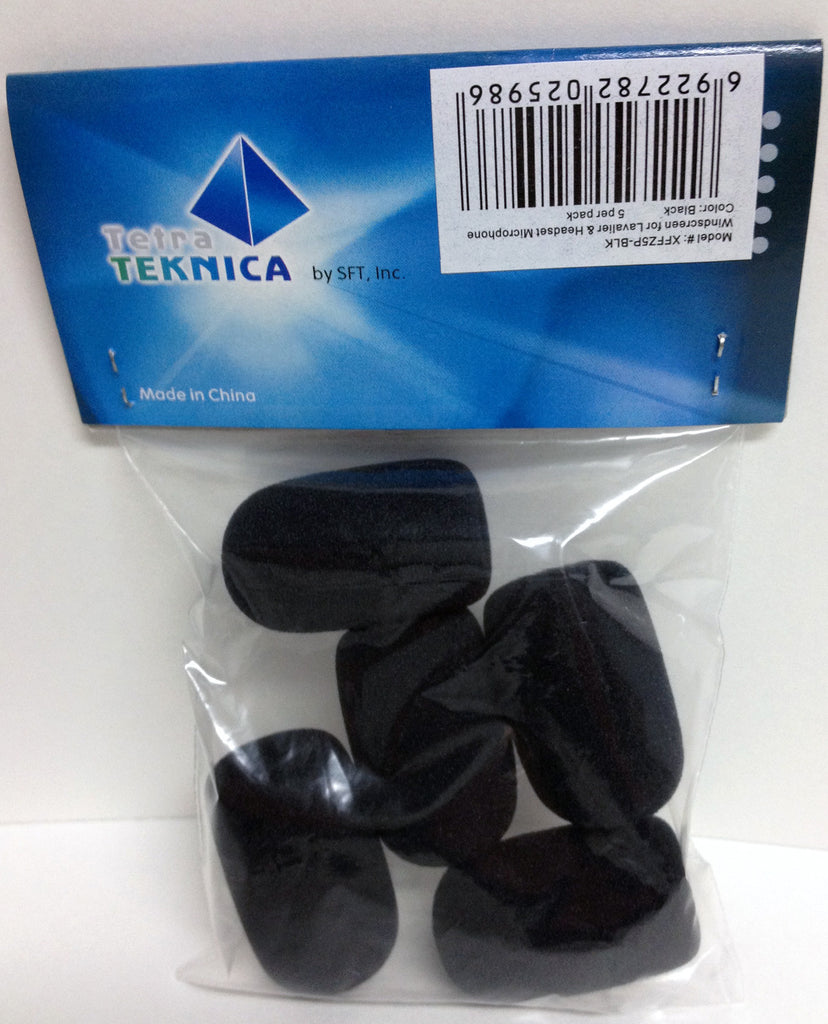 Tetra-Teknica XFFZ5P-BLK Lapel & Headset Microphone Windscreen, Color Black, 5-Pack